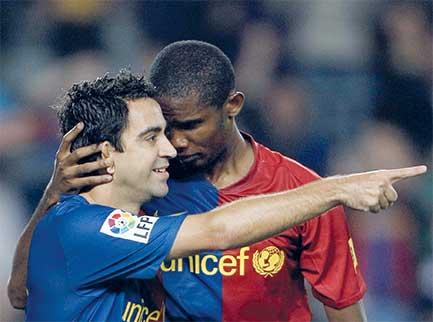 قاد الكاميروني صامويل إيتو فريقه برشلونة الى فوز ساحق على الميريا بخماسية نظيفة كان نصيبه منها ثلاثة أهداف في افتتاح المرحلة الثامنة من الدوري الإسباني لكرة القدم. جاءت أهداف برشلونة في الشوط الاول، فسجل إيتو في الدقائق 5 و21 و24، وأضاف الفرنسي تييري هنري الرابع (13) والبرازيلي دانيال الفيش (37).