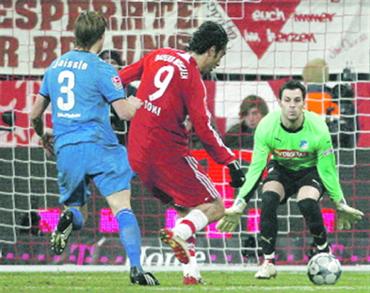 سقط هوفنهايم، مفاجأة الدوري الالماني لكرة القدم والصاعد اليه حديثاً، في اللحظة الاخيرة امام مضيفه مضيفه بايرن ميونيخ بطل الموسم الماضي 1-2 أول من أمس، في ميونيخ في افتتاح منافسات المرحلة السادسة عشرة من الدوري الالماني لكرة القدم.