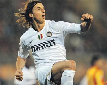 إبراهيموفيتش يحتفل بتسجيل الهدف الأول للإنتر. أ.ف.ب