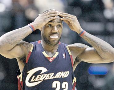 نجم كافالييرز جيمس لم يصدق الهزيمة. أ.ب
