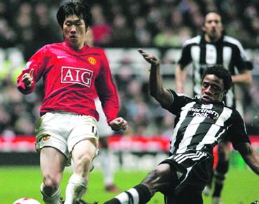 لاعب مانشستر بارك تألق أمام نيوكاسل. أ.ب.أ