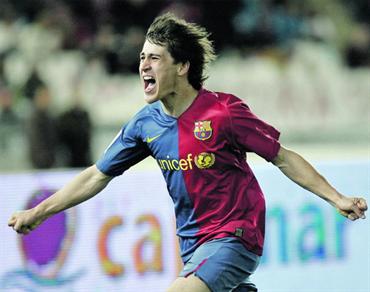 بويان يحتفل بتسجيله الهدف الأول لبرشلونة. أ.ف.ب