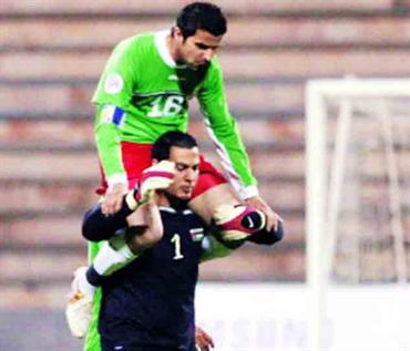 عامر شفيع وفيصل إبراهيم يحتفلان باللقب. خاص ــ الإمارات اليوم