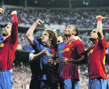 نجوم برشلونة استعرضوا قواهم في مسرح برنابيو. أ.ب