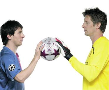 ميسي يحاول هزّ شباك فان دير سار اليوم. أ.ف.ب