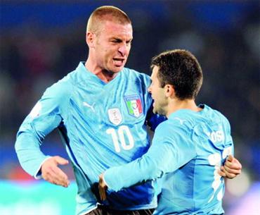 جوزيبي ودانييلي دي روسي سجلا أهداف إيطاليا. أ.ف.ب