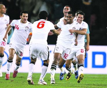 نجوم مصر يهنئون محمد حمص بعد تسجيله هدف المباراة الوحيد. إي.بي.إيه