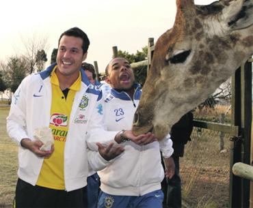 لاعبو البرازيل يستمتعون بمشاهدة الحيوانات الجنوب إفريقية. أ.ف.ب