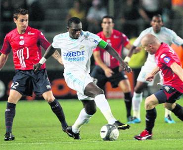 لاعب مرسيليا مامادو يقود هجمة وسط الميدان. أ.ف.ب