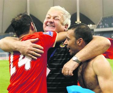 ماتشالا يهنئ لاعبيه على التأهل إلى الملحق. أ.ب