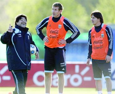 الأرجنتين بقيادة مارادونا تواجه خطر الغياب عن المونديال الإفريقي. رويترز