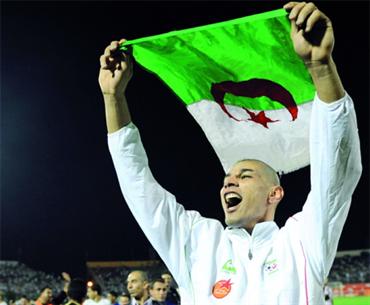 لاعب الجزائر حسين بيدا بعد فوز فريقه الكبير. أ.ف.ب