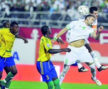 لاعب الجزائر الغزالي يسدد إحدى كراته بالرأس. أ.ف.ب
