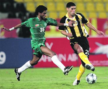 قطر في مباراة سابقة مع العروبة العماني. أ.ف.ب