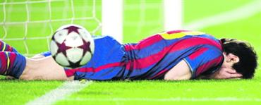 ميسي حزين بعد خسارة برشلونة من كازان الروسي 1-2. أ.ب