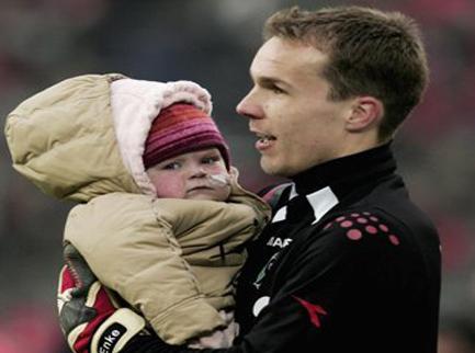 صورة تعود لعام 2006 وفيها إنكه يحمل ابنته لارا التي توفيت قبل عامين بعد معاناة مع المرض. غيتي. أرشيفية