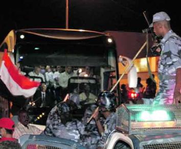 حراسة أمنية لبعثة المنتخب المصري لدى وصولها الخرطوم. أ.ف.ب