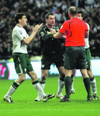 لاعبو أيرلندا يحتجون بشدة على الخطأ التاريخي للحكم السويدي هانسون. إيه.بي.إيه