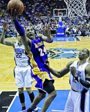ويدين اورلاندو بفوزه الـ44 في 64 مباراة الى فينس كارتر ولاعب ارتكازه دوايت هاورد وصانع الالعاب جامير نيلسون، اذ سجل الاول 25 نقطة (بينها 13 من الرميات الحرة من اصل 14 محاولة) واضاف الثاني 15 نقطة مع 16 متابعة والثالث 15 نقطة ايضا مع تسع متابعات وسبع تمريرات حاسمة بعد مباراة حامية بين الطرفين خصوصا من ناحية الاندفاع الجسدي وبشكل خاص بين نجم ليكرز كوبي براينت ولاعب اورلاندو مات بارنز اللذين حصلا على خطأين فنيين نتيجة تدافعهما.