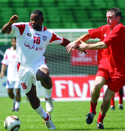 من مباراة الأبيض الإماراتي وفريق ليفربول. من المصدر