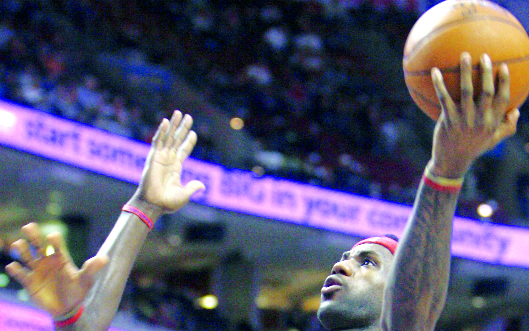 ليبرون جيمس يتأهب لدك سلة فيلادلفيا. رويترز