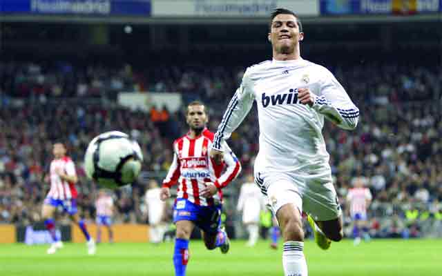كريستيانو رونالدو يلهث خلف كرة مدريدية. رويترز