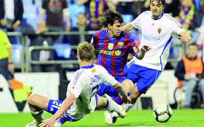 تابع المهاجم الدولي الأرجنتيني ليونيل ميسي، تألقه بتسجيله ثلاثية جديدة قاد بها فريقه برشلونة حامل اللقب الى الفوز على مضيفه سرقسطة 4-2 أول من أمس، في ختام المرحلة الـ27 من بطولة اسبانيا لكرة القدم.