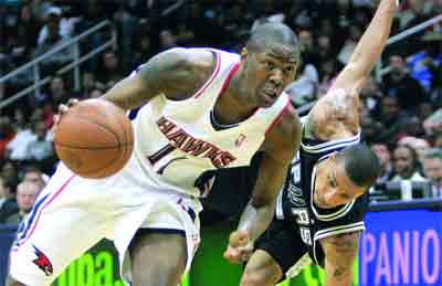 جمال كراوفورد شقّ طريقه بنجاح إلى ملعب سان أنطونيو سبيرز وسجل 19 نقطة. أ.ب