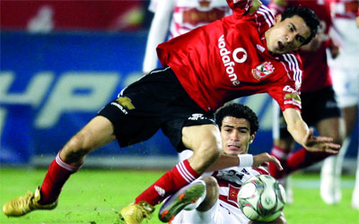 بركات يحاول تخطي دفاع الزمالك. رويترز