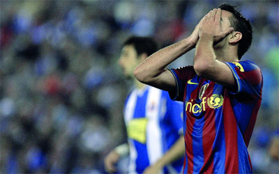 ولم يهدد لاعبو برشلونة مرمى الحارس الدولي الكاميروني كارلوس كاميني بشكل مباشر، وانقطعت معظم هجماتهم بأقدام المدافعين.