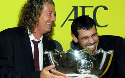 يونس محمود يمازح ميتسو على هامش سحب القرعة. أ.ف.ب