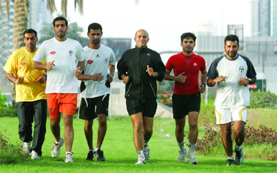 مجموعة من الحكام الدوليين والدرجة الأولى يتوسطهم علي حمد «الثالث من اليمن» في تدريبات سابقة. تصوير: مصطفى قاسمي