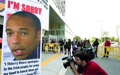 هنري قاد فرنسا إلى نهائيات جنوب إفريقيا بيده اليسرى. أ.ف.ب