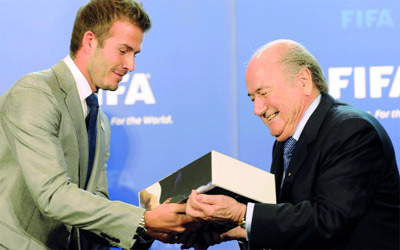 بيكهام قام بتسليم ملف إنجلترا 2018 إلى رئيس «الفيفا» بلاتر. إي.بي.إي