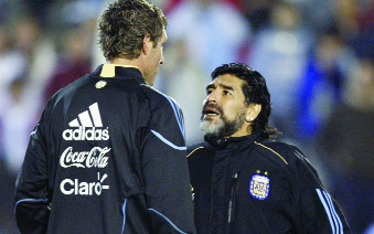 ظهر نجم برشلونة الاسباني ونابولي الايطالي السابق من المدرجات هذه المرة يلاحق منتخب بلاده في القارات المختلفة، ويراقب النجوم الصاعدة من ليونيل ميسي الى اغويرو «الصهر» المنتظر، وبعدما رمى المدرب الفيو باسيلي أوراقه على رأس الـ«البي سيليستي»، لعب خوليو غروندونا رئيس الاتحاد الارجنتيني الورقة المنتظرة، دييغو مارادونا مديرا فنيا بمعاونة سيرخيو تروليو في حين تسلم المدرب السابق في انتصار 1968 كارلوس بيلاردو مهمة مدير المنتخب، وذلك قبل يومين من عيد ميلاد مارادونا الثامن والاربعين.
