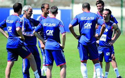 دومينيك يقود حصة تدريبية لمنتخب فرنسا. أ.ف.ب
