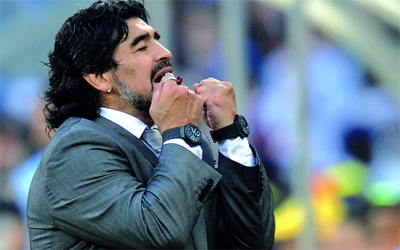 مسألة بقاء أو رحيل مارادونا عن تدريب التانغو تشغل بال الأرجنتينيين. أ.ب