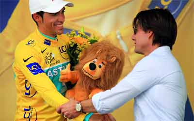 النجم السينمائي توم كروز يتوج كونتادور في نهاية إحدى المراحل. غيتي