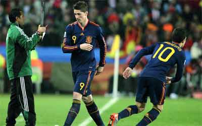 فابريغاس (يمين) أسهم في اللقب الإسباني المونديالي. أ.ب