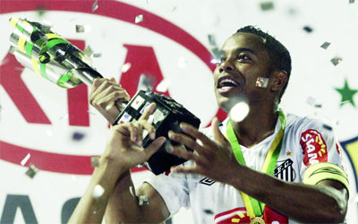 أنهى المهاجم البرازيلي روبينيو إعارته التي استمرت ستة اشهر مع نادي سانتوس متألقا عندما ساعد الفريق على الفوز بكأس البرازيل أول من أمس الاربعاء وعبر اللاعب عن امله بالاستمرار مع الفريق، بعدما اعجبه الاستقرار في بلاده. وفاز سانتوس بكأس البرازيل رغم خسارته 2-1 امام فيتوريا في لقاء الاياب، اذ انه فاز 3-2 في النتيجة الاجمالية للقاءي الذهاب والاياب ليرفع الكأس للمرة الاولى في تاريخه ويتأهل للمنافسة في كأس ليبرتادوريس في العام المقبل.