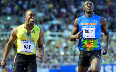 نجح الاميركي تايسون غاي في التفوق على الجامايكي اوساين بولت البطل العالمي والاولمبي وحامل الرقم القياسي العالمي في سباق 100 م، عندما احرز المركز الاول في لقاء ستوكهولم لالعاب القوى، الجولة الحادية عشرة من الدوري الماسي الجمعة. وقطع غاي وصيف بولت في مونديال برلين ،2009 مسافة السباق بزمن 84:9 ثوان امام الجامايكي الذي سجل 97:9 ثوان، والترينيدادي ريتشارد طومسون 10:10 ث.