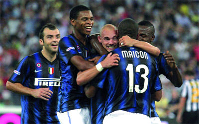وأمام يوفنتوس، سجل انتر هدفه الوحيد عبر لاعب وسطه الهولندي ويسلي سنايدر بتسديدة رائعة من خارج المنطقة سكنت المقص الايسر لمرمى حارس «السيدة العجوز» النمساوي أليكس مانينغر وصفق له المشاهدون طويلاً.