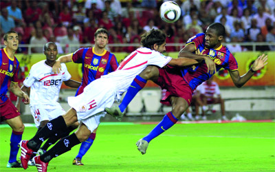 قطع إشبيلية، حامل لقب الكأس المحلية، شوطاً كبيراً نحو إحراز مسابقة الكأس السوبر الاسبانية لكرة القدم، بتغلبه على برشلونة حامل لقب الدوري 3/1 أول من أمس، في مباراة الذهاب التي أقيمت على ملعب «سانشيز بيزخوان» في اشبيلية.