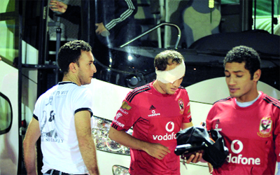 حافلة النادي الأهلي تعرضت للرشق بالحجارة في الجزائر. إي.بي.أيه