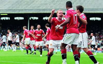 في المباراة الاولى على ملعب كريفن كوتايج وأمام اكثر من 25500 متفرج، أعطى المخضرم بول سكولز (35 عاماً) أفضلية التقدم للضيوف في وقت مبكر بعدما تلقى تمريرة من البلغاري ديميتار برباتوف انهاها بهدف رائع (11).