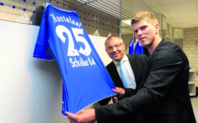 قدم نادي شالكه الألماني لكرة القدم مهاجمه الهولندي الجديد كلاس يان هونتلار، رسمياً أول من أمس الأربعاء، بعد أن سجل خمسة أهداف لمنتخب بلاده في التصفيات المؤهلة لكأس الأمم الأوروبية المقبلة (يورو 2012). وانضم هونتلار 27 عاماً لشالكه قادماً من ميلان الإيطالي مقابل نحو 14 مليون يورو (17.8 مليون دولار). وتم تأجيل التقديم الرسمي للاعب لنحو أسبوع بسبب مشاركته مع المنتخب الهولندي في تصفيات يورو .2012 وسجل هونتلار خمسة أهداف للمنتخب الهولندي من بينها ثلاثية (هاتريك) خلال الفوز على سان مارينو 5/صفر الجمعة الماضي بجانب هدفين في الفوز على فنلندا 2/1 الثلاثاء. وقال هونتلار «أريد أن أسجل أكبر عدد من الأهداف مع شالكه أريد أن ألعب وهو ما لم استطع تحقيقه أخيراً مع ميلان».