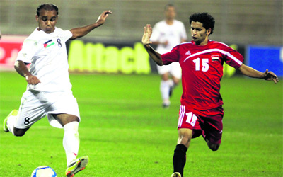 فاز المنتخب اليمني على نظيره الفلسطيني 3-،1 اول من أمس، على استاد مدينة الملك عبدالله الثاني في القويسمة بعمان، في الجولة الثانية من منافسات المجموعة الثالثة في النسخة السادسة من بطولة غرب اسيا لكرة القدم.