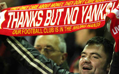 وذهب نحو سبعة الاف مشجع قبل مباراة ليفربول يوم الاحد الماضي على أرضه في انفيلد امام بلاكبول الوافد الجديد في الدوري الانجليزي وهم يلوحون بلافتات ويهتفون في اخر حلقة من سلسلة الاحتجاجات ضد هيكس وجيليت.