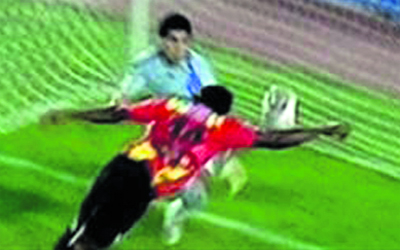 هدف النيجيري مايكل اينيرامو الذي سجله بيده في مرمى الأهلي