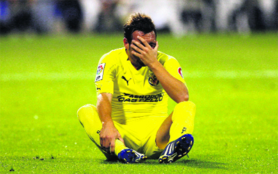 سانتياغو كازورلا يبكي على ضياع فرصة الصدارة على فياريال. رويترز